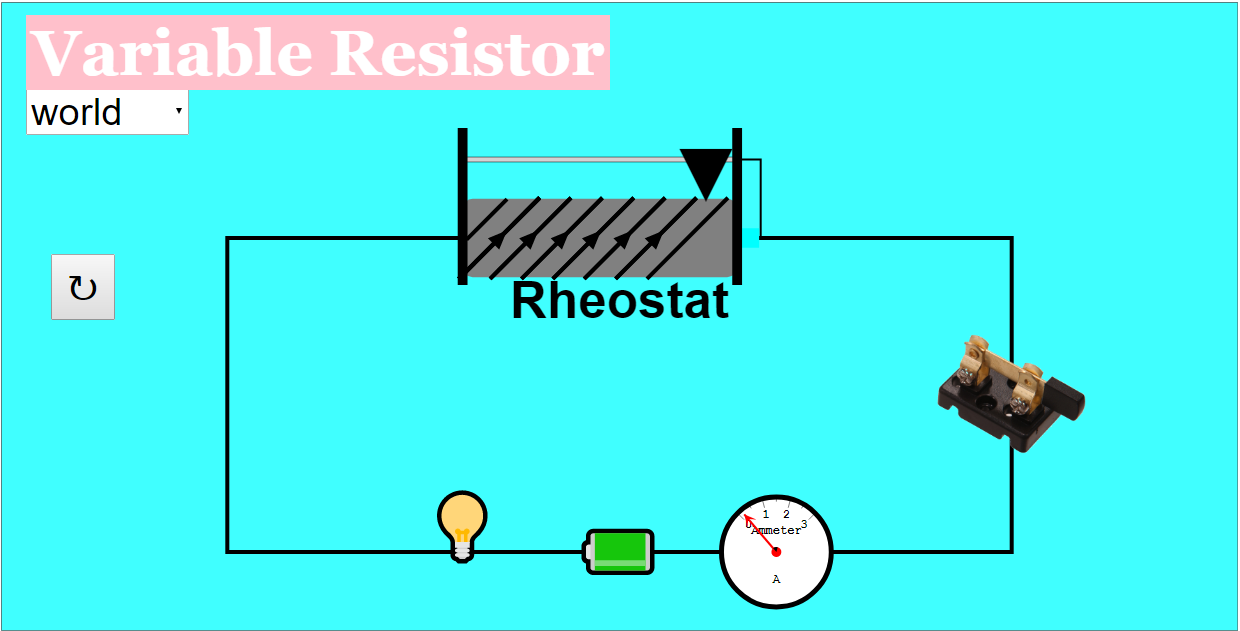 - It's an interactive simulation designed to demonstrate how a variable resistor works within a circuit. Users can manipulate the resistance and observe the effects on the circuit. The simulation provides different viewing options, including a world view, a diagram view, and a special view.