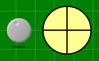 - What does the dimmer button control in the simulation?