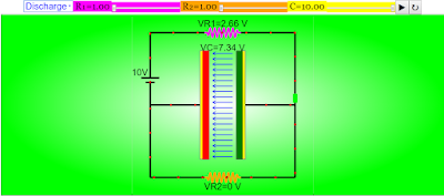 - User Control and Exploration: The applet offers several interactive elements that allow users to control and observe the charging and discharging processes. These include toggles for different displays (Charge, Discharge, World, Graph, Both), sliders for adjusting resistance and charge, and play/pause/reset buttons for controlling the simulation flow.