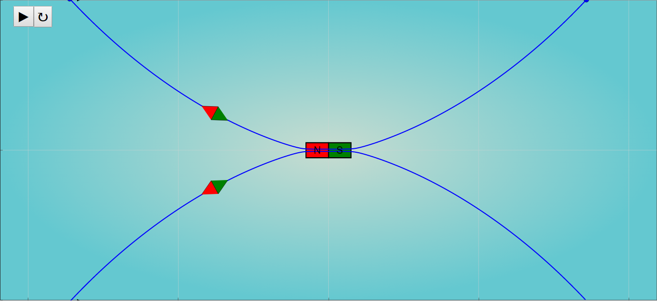 - "In this simulation below, you can play/pause the simulation, select the checkbox, and drag the magnetic needle to create additional sets of magnetic field lines."