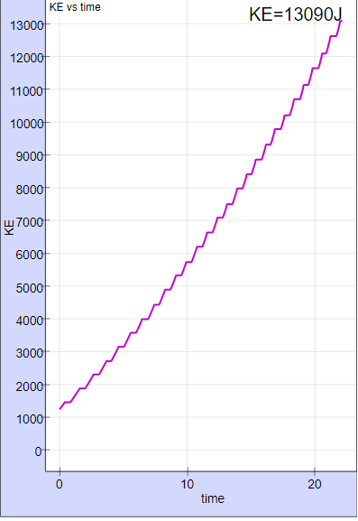 hint: look at the value bar of KE, you may select the checkbox to view the scientific graph of KE vs t.