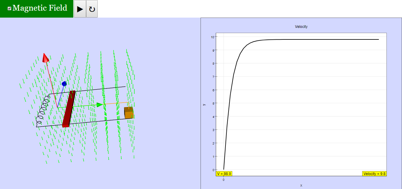 - A "Magnetic Field Check Box" allows users to toggle the visibility of the magnetic field, represented by green arrows.