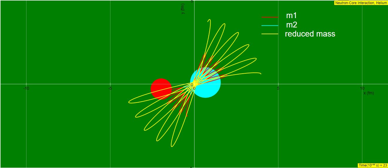 - Explain the theoretical framework behind the Nuclear Binary System Simulator, detailing how the equations of motion for a two-body system are simplified using the concepts of center of mass and reduced mass, and how the force between the particles is derived from the potential energy.