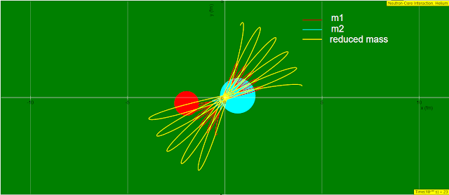 The simulation implements classical mechanics to describe the motion of the two particles, governed by Newton's second law. The force between the particles is derived from the Woods-Saxon potential, a spherically symmetric potential commonly used to approximate the potential experienced by nucleons within an atomic nucleus. The simulation solves the resulting coupled differential equations for the x and y components of the particles' motion.