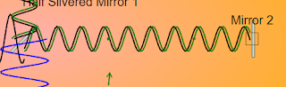 - Light Source: A source of coherent light, which is represented by sinusoidal waves. The light moves from the source and is split by a half-silvered mirror.