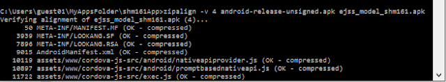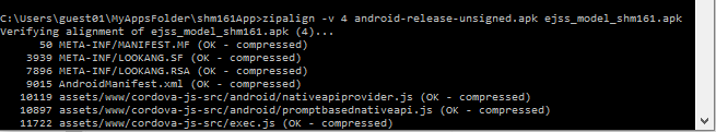 - \( zipalign -v 4 android-release-unsigned.apk ejss_model_shm161.apk