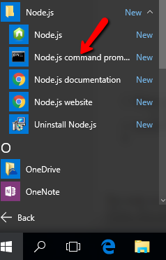 - Open up the Node.js command line and use the follow command without the \( sign, where \) character indicates the operating system prompt. If you are using a Mac, please add sudo (If you are on a Mac computer, you may want to follow these instructions.) in front of the npm..... the instructions here are for Windows OS.