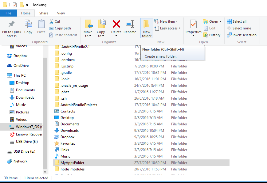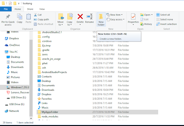 - Organisation of project folder: make a folder to hold all the ionic app projects let's call it MyAppsFolder