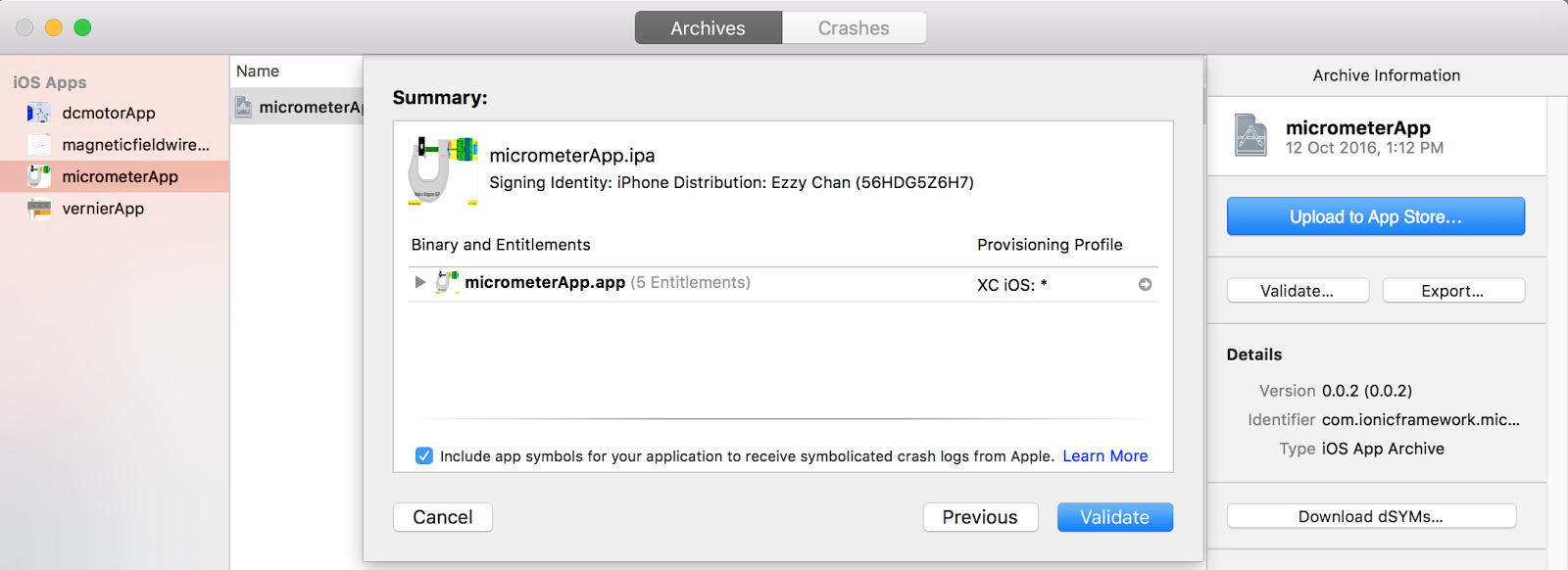 - building the archive *.ipa may produce this error micrometerApp has conflicting provisioning settings. micrometerApp is automatically signed for development, but a conflicting code signing identity iPhone Distribution has been manually specified. Set the code signing identity value to "iPhone Developer" in the build settings editor, or switch to manual signing in the project editor. Code signing is required for product type 'Application' in SDK 'iOS 10.0'