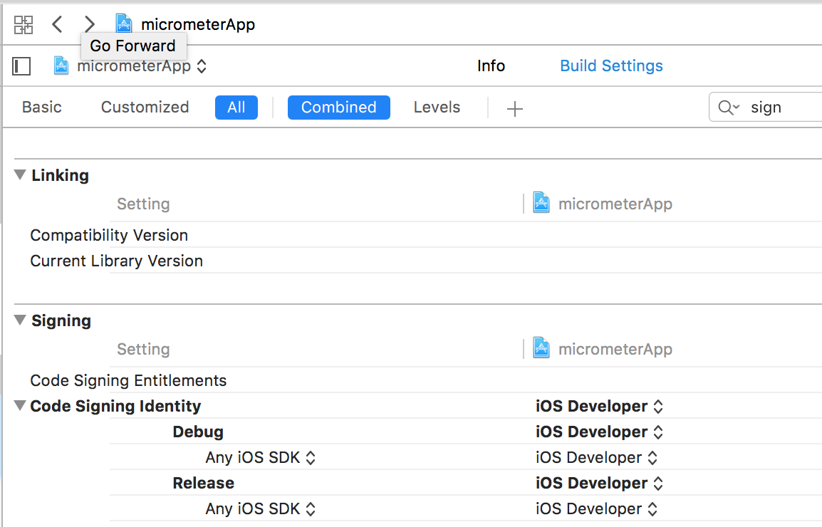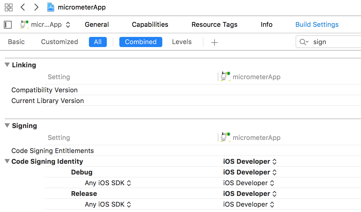 - Try to click the build button and see if the errors such as Signing for "micrometerApp" requires a development team. Select a development team in the project editor. Code signing is required for product type 'Application' in SDK 'iOS 10.0'.