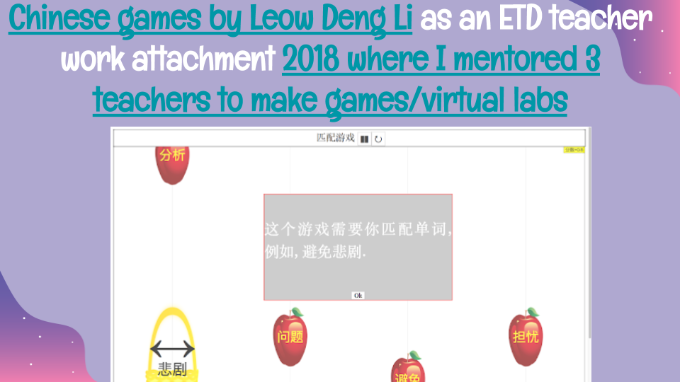 - Games for learning: Utilizing game-based approaches for subjects like math ("SLS Game Tic Tac Toe Addition"), language ("🐉Shoot the simile and metaphor dragons," various Malay language games), and even chemistry ("🧪Balancing Chemistry Equation").