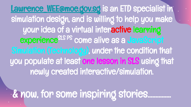 The resources appear to be developed by educators and contributors within Singapore, often shared through platforms like blog posts and linked websites (e.g., Wixsite, Google Sites). The initiative also seems to involve events like "I-Cube Sharing" sessions and "SLS Hackathons," suggesting a collaborative approach to creating and disseminating these educational tools. The mention of the "Easy Java/JavaScript Simulations Toolkit" indicates the use of specific tools for development.