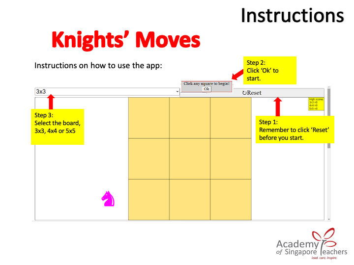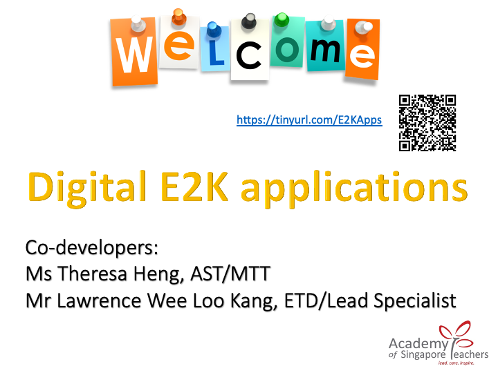 - Ms Theresa Heng (AST/MTT) and Mr Lawrence Wee Loo Kang (ETD/Lead Specialist) are mentioned as co-developers for the "Digital E2K applications Knights Move."