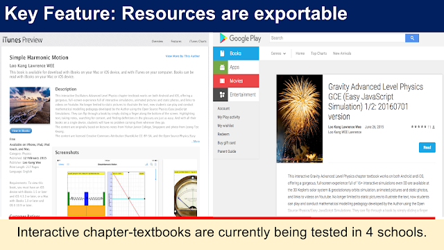 Visitors will be guided to the Open Source Physics at Singapore (OSP@SG) to access the website with 300+ open source and open educational digital resources that runs on their own mobile devices. There are apps and e-books on Android Playstore and Apple App Store that can download these resources for off-line use. The interactive hands-on experience could take the form of visitors playing with the apps, ebooks, or interactive resources on their mobile device browser.
