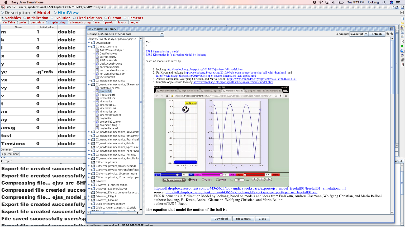 Since 2012, MOE has been collaborating with schools¹ on OSP@SG, with positive feedback received on the project both in Singapore and around the world. Some benefits include enhanced students’ learning through the student-centric pedagogy where students learn to experiment like real life scientists using modelling and simulation. Students could better visualise, explore and discover abstract physics concepts through manipulation and modelling techniques. In addition, an interest-based learning community for the OSP@SG has been formed. This community include the many OSP experts namely, Professor Francisco Esquembre, Fu-Kwun Hwang, Wolfgang Christian, Felix Gracia and Douglas Brown and many more in the world who helped to develop the materials to sustain the community. By networking and learning with the experts, teachers in local schools are now taking greater ownership of the materials they author by either remixing the models or creating new worksheets to support the guided inquiry or modelling pedagogy afforded through OSP@SG.