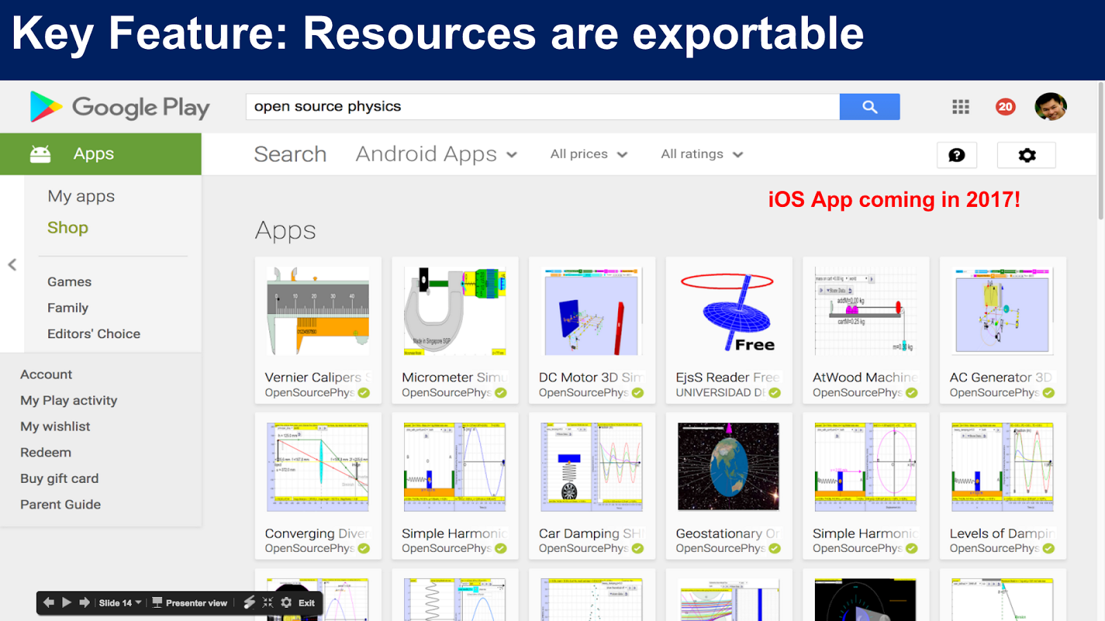 - Variety of Formats: The resources include a wide variety of formats, including JavaScript applets, HTML5 models, ebooks and apps on both Android and Apple app stores. The materials run on "computers and mobile devices."