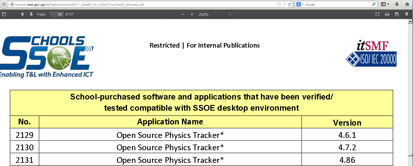 - intranet.moe.gov.sg: For information regarding software compatibility within the Singapore school operating environment (SSOE).