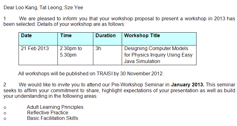 In my paper (Wee, 2012b, p. 306), evidence on student learning includes: