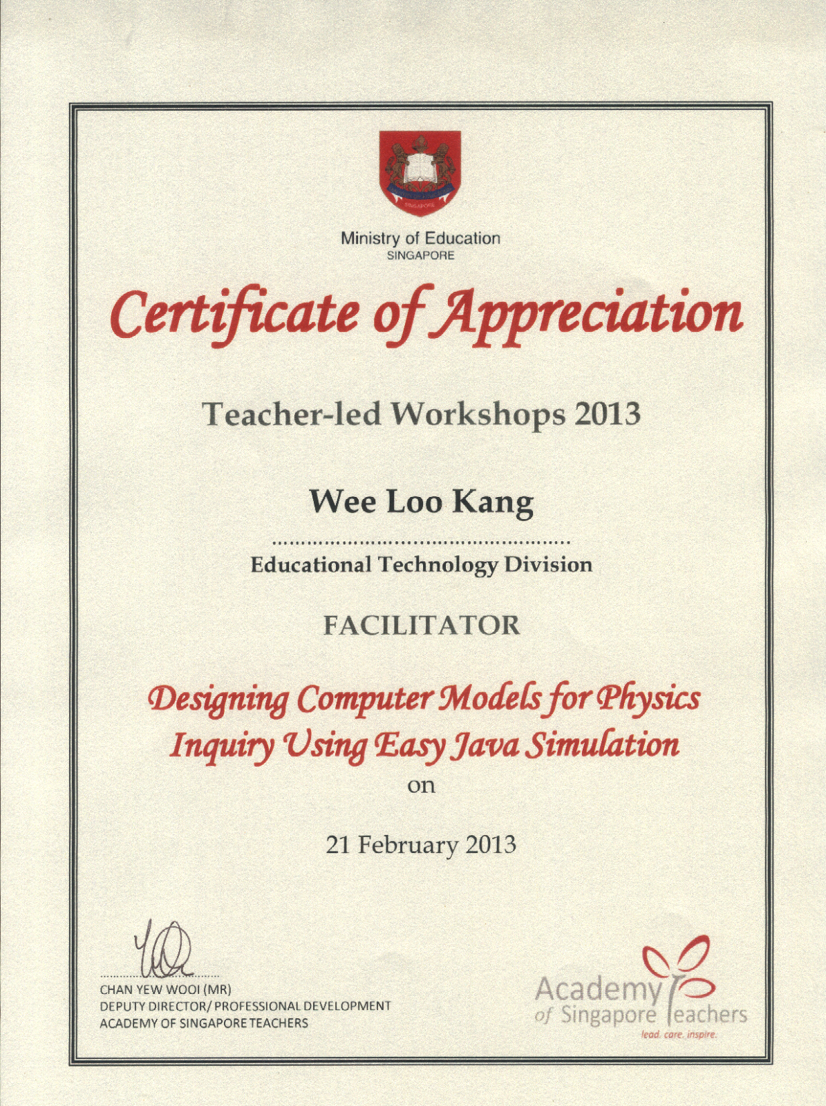 20. Wee, L. K. (2010, July 17-21). AAPT 2010 Conference Presentation:Physics Educators as Designers of Simulations. Paper presented at the 2012 AAPT Summer Meeting, Portland Oregon USA.