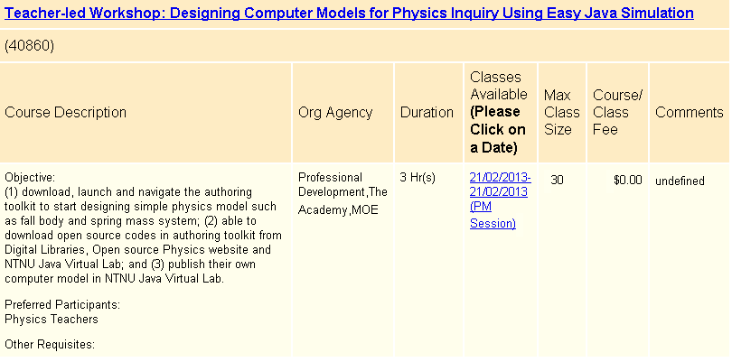 • "The Open Source Physics community using Easy Java Simulation (Esquembre, 2004) has created hundreds of computer models (simulations) that could be customized (Wee & Mak, 2009) to the Singapore syllabus for more targeted productive activities."