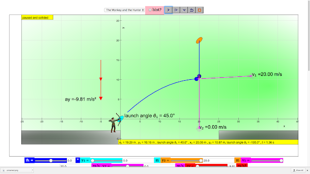 Monkey and Hunter Projectile JavaScript HTML5 Applet Simulation Model