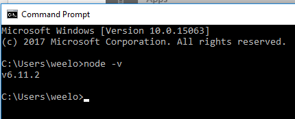 , Powershell or a similar command line tool, and type node -v. This should print a version number, so you’ll see something like this v6.11.2 (or upper).