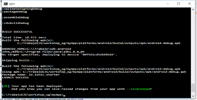 Also make sure you have SDK Android installed and your Android device ready by running simple commands to see what version of each is installed: