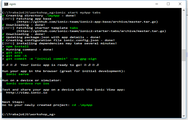 Make sure you have Node (and NPM package) and Ionic installed by running simple commands to see what version of each is installed: