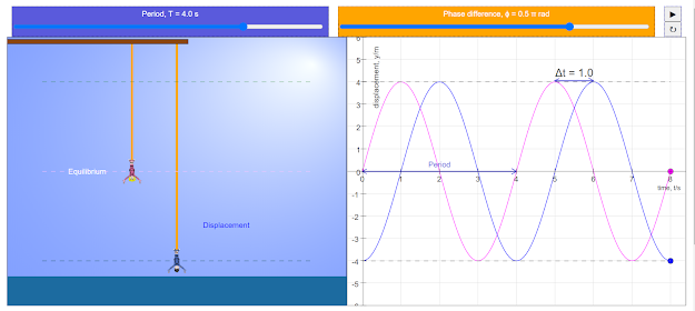 - Explain the concept of phase difference in the context of oscillatory motion. Using the "SHM Bungee Phase Graph" simulation as a potential example, describe how visualizing phase difference can enhance understanding of the dynamics of multiple oscillating systems.
