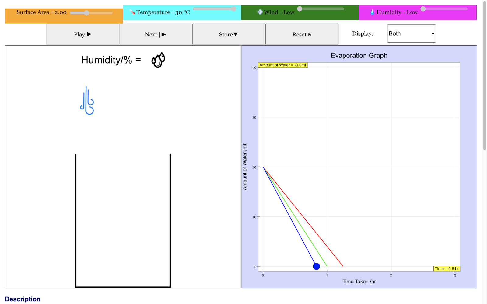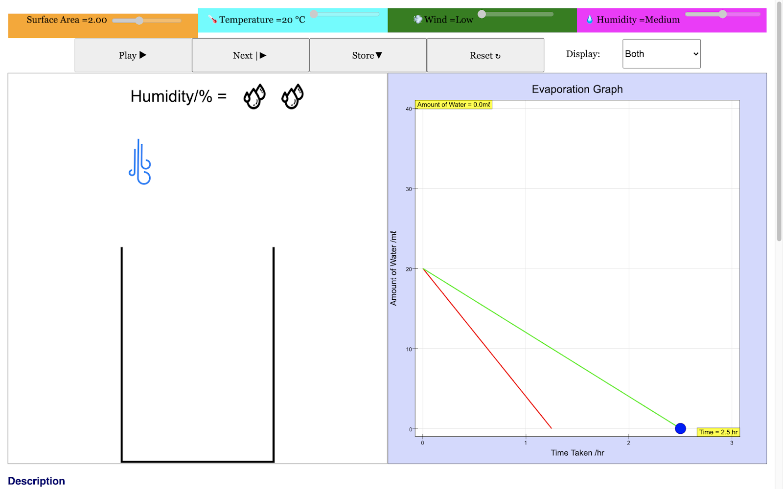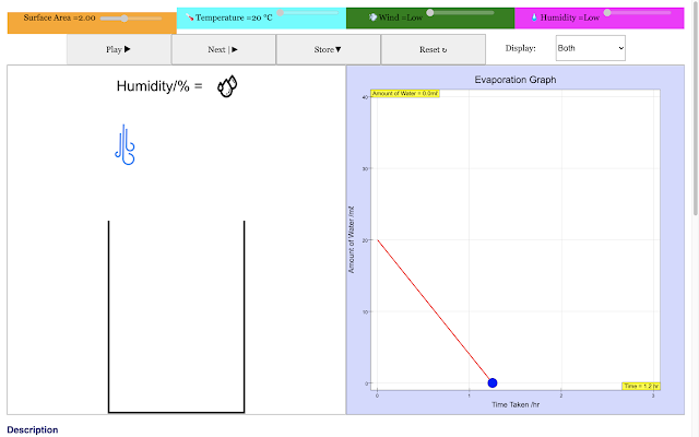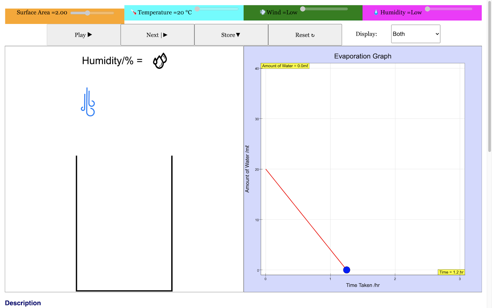 - An interactive HTML5 applet for secondary school that allows exploration of the effects of pressure, surface area, temperature, humidity, and wind on evaporation.